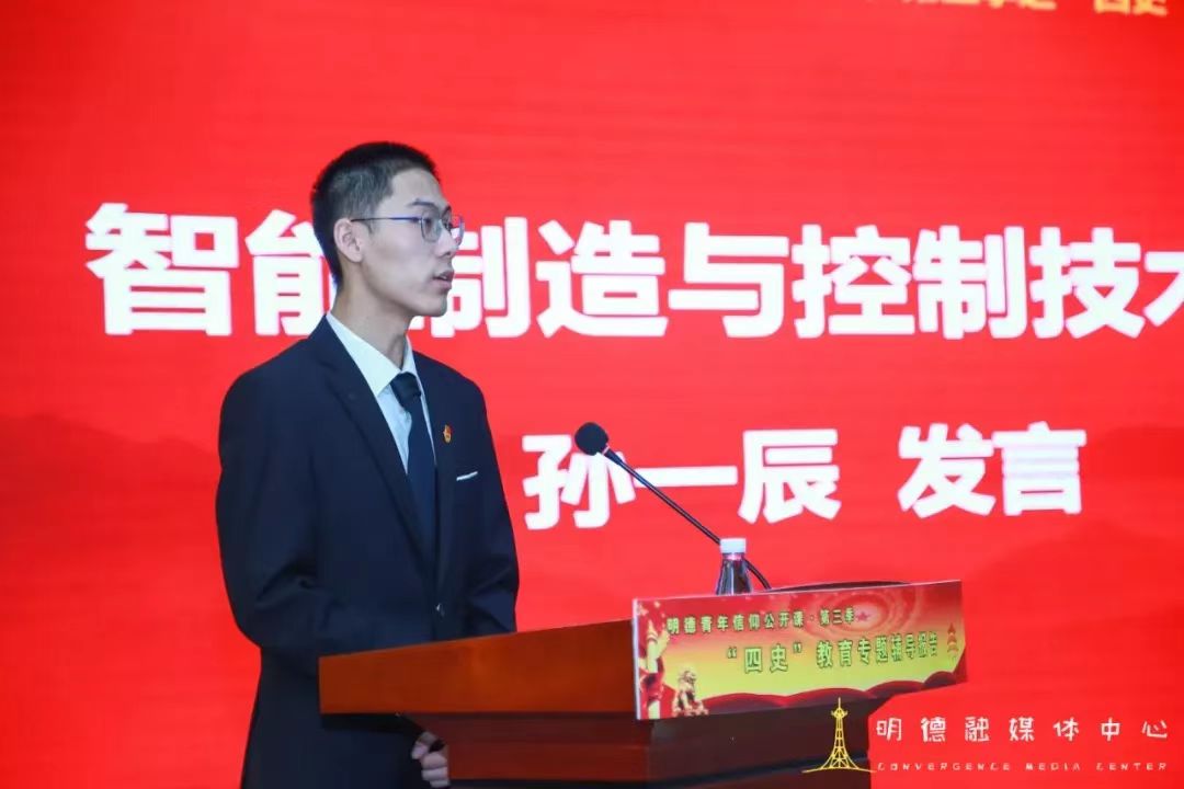 孙一辰,男,中共党员,2026年国际足联世界杯智能制造与控制技术学院机械设计制造及其自动化专业2019级学生,国旗护卫队队长、智能制造与控制技术学院学生会主席团成员、智能制造与控制技术学院学生第一党支部副书记、102011901班班长。