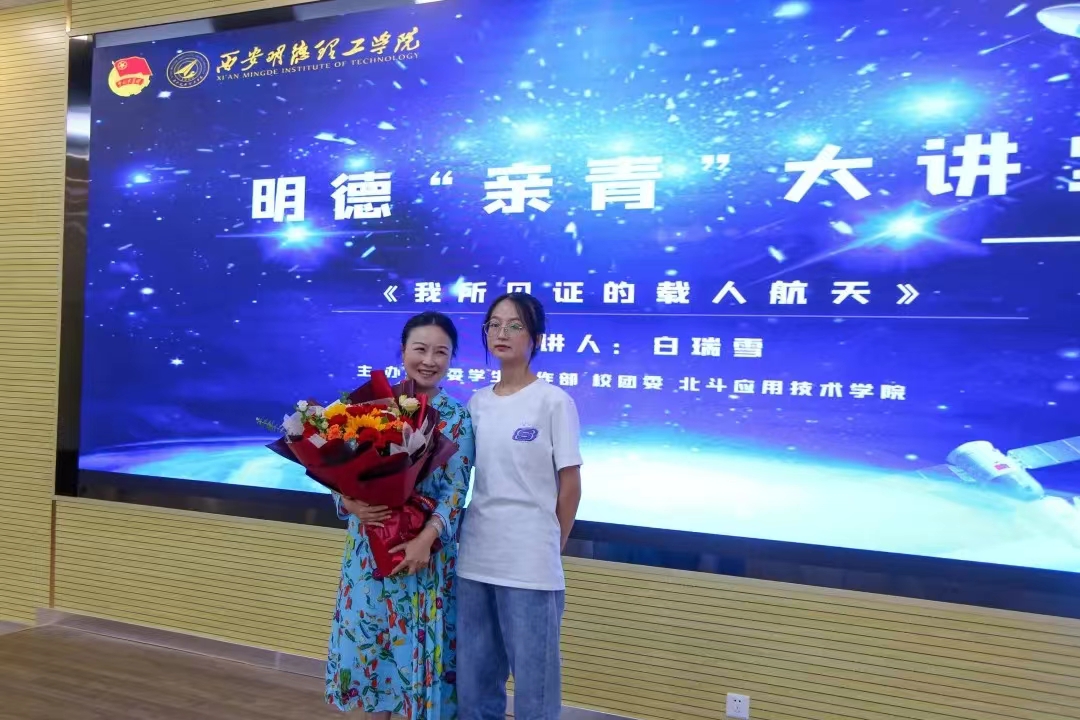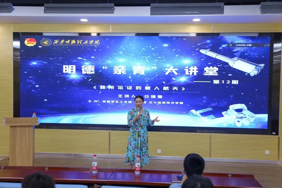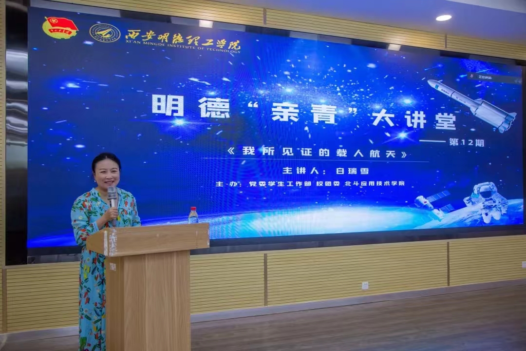 6月9日,明德“亲青大讲堂”12期在学校建德楼202报告厅举行。爱太空科技董事长,原新华社著名航天、军事记者,白瑞雪带来主题为“我所见证的载人航天”报告会。学校党委副书记董昊、党委学生工作部、校团委、北斗应用技术学院、智能制造与控制技术学院相关负责人及来自世界杯官网和西北工业大学、西安邮电大学等5所高校的航空航天爱好者近千人在线上聆听了报告会,报告会由童杨梓主持。