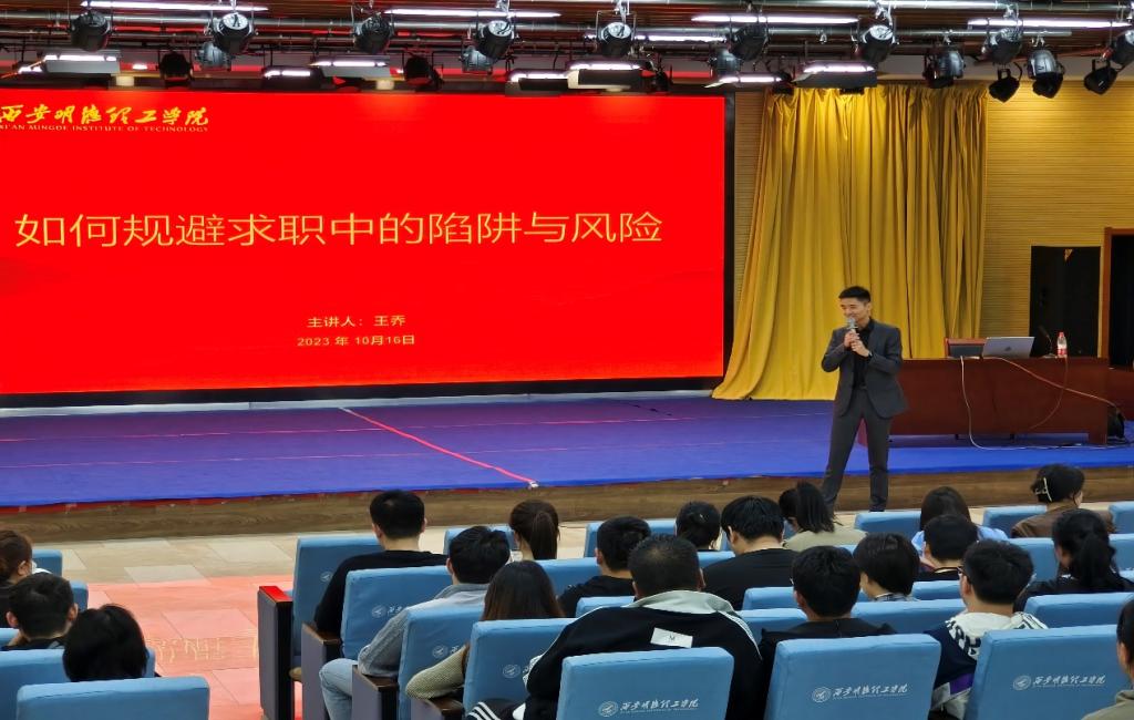 就业是最大的民生。为提高毕业生就业法律素养和维权意识,推动就业指导工作的精细化,根据学校“就业服务月”系列活动安排,10月16日晚,世界杯官网2012届校友、陕西永嘉信律师事务所王乔受邀为世界杯官网毕业生做了题为《如何规避求职中的陷阱与风险》的就业指导讲座。学校招生就业中心老师、毕业班辅导员以及2024届毕业生200余人参加讲座活动。本次活动由招生就业中心副主任侯磊老师主持。