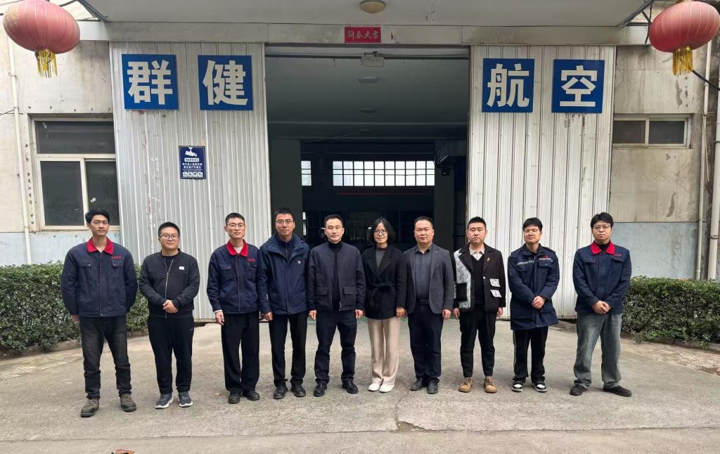 为深化校企协同育人机制,拓宽学生实习与就业渠道,10月30日,智能制造与控制技术学院党委书记陈雪彬、副书记曾凯、科研副院长李郁、机械设计制造及其自动化专业负责人刘洋、飞行器制造工程专职教师张敏一行,赴西安市群健航空精密制造有限公司(以下简称“群健航空”)调研交流。本次调研旨在走访杰出校友,对接企业需求,共同探索产教融合新路径,推动人才培养与产业升级深度融合。