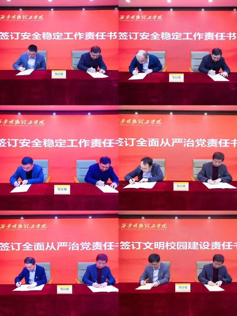 会上,阎东明、杨健君与相关单位负责人代表分别签订了2023年全面从严治党责任书、安全稳定目标责任书、文明校园建设责任书。