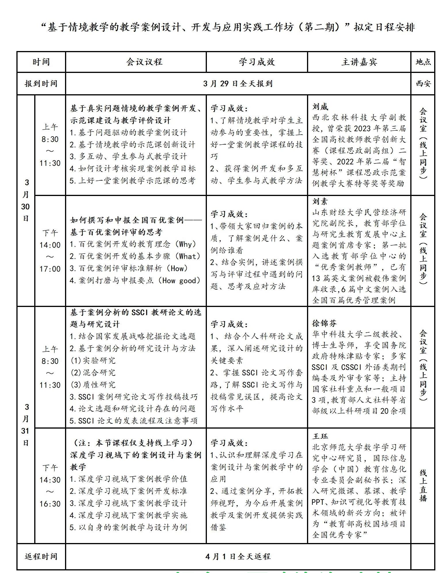 为全面贯彻落实习近平总书记对教育的重要论述和最新指示批示精神,着力打造教学案例建设新模式、新品牌、新高地,提高高校教师案例教学水平和人才培养质量,促进案例教学法在教学中的应用。学校将组织各学院教师参加在西安举办的“基于情境教学的教学案例设计、开发与应用实践工作坊(第二期)”。现将有关事宜通知如下: