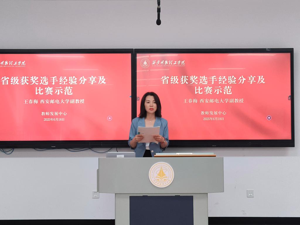 为充分发挥学科竞赛育人功能,提升教师教学创新能力,学校于6月18日举办教师教学创新大赛专项培训讲座(第二场)。本场培训特邀西安邮电大学王春梅副教授担任主讲教师,围绕赛事经验分享与备赛示范展开专题指导,吸引了全校20余名教师参与,现场氛围浓厚,互动交流热烈。