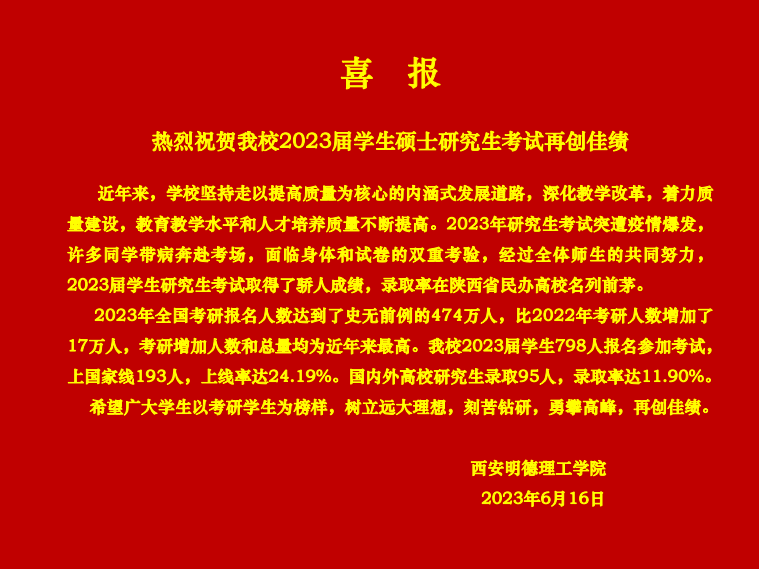 热烈祝贺世界杯官网2023届学生研究生考试再创佳绩