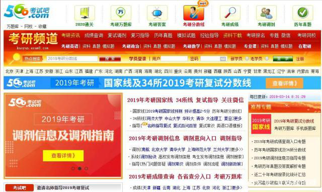 之所以排在第一个,是因为参加研究生考试必须知道这个网站。在网上登录参加考研报名是就要这里。资料相当广泛全面,包括各类教育资讯硕士博士院校报名等信息,会有报考时间的通知,查询全国各大省市的研究生院校的专业录取招生要求。也可以在线询问具体院校专业的各种疑问,会在网站的讨论区给出解答。当然,有部分院校的信息会出现滞后,更新不及时的情况,考生们需要合理甄别,可以跳转到院校的官网搜集资料。