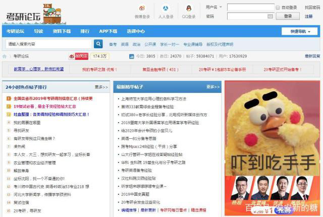 看网站的名字就知道,对考研人免费的论坛。各种类目的考研资料都可以免费下载,有需要的同学一定要好好利用起这个平台。这里面的也有很多备考交流帖,会分享研究生备考流程、考研注意事项、复习方法等内容,算是比较好的考研论坛