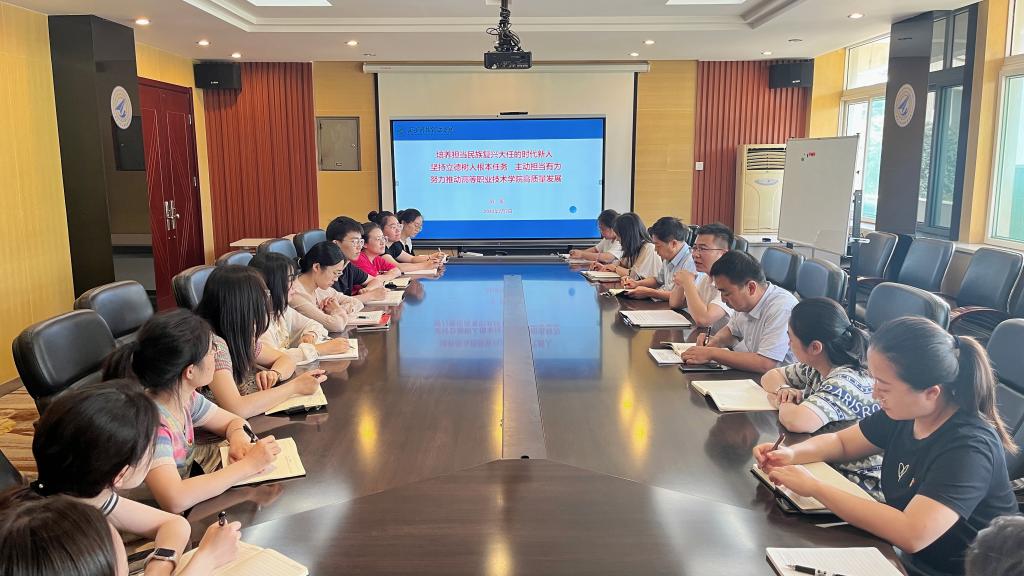为深入贯彻落实党的二十大精神,扎实深入推进学习贯彻习近平新时代中国特色社会主义思想主题教育,进一步学习领会习近平总书记系列重要讲话精神、重要指示批示精神,把准正确方向、把握精髓要义、把牢目标要求,2023年7月7日上午,学校副校长刘星来到高等职业技术学院调研交流,为全体党政班子、教师党员讲授专题党课,会议由高等职业技术学院党总支书记王庭良同志主持。