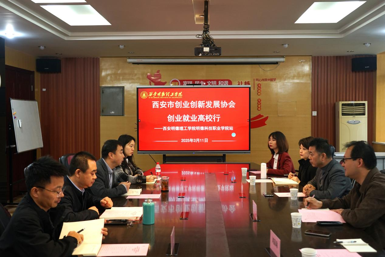 为加强校企合作,提高师生创新创业能力,学习先进理念,推动创新创业工作与企业的深度合作。3月11日上午,明德科技职业学院、西安市创业创新发展协会在明理楼216会议室举办“创业就业高校行”交流活动座谈会。