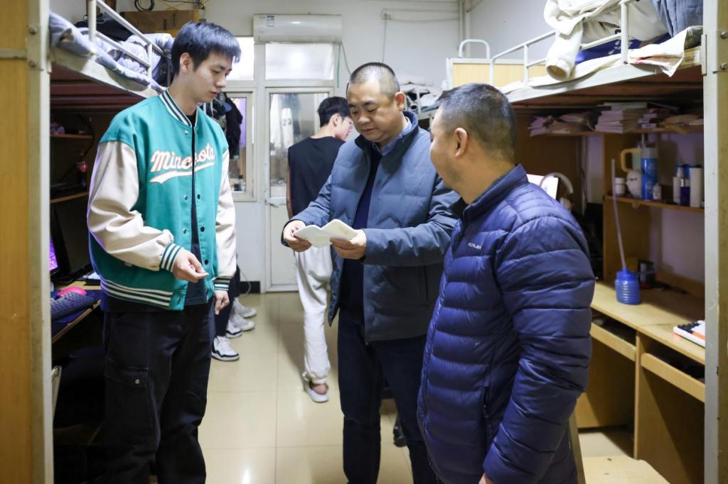 为加强学生宿舍安全管理,排查宿舍各类安全隐患,12月4日晚,高等职业技术学院的党总支书记王庭良、副书记王飞以及全体辅导员,联合学校“一站式”学生社区开展了一场全面细致的安全与卫生检查活动。此次检查涉及学院各个学生宿舍楼,覆盖全院学生宿舍。