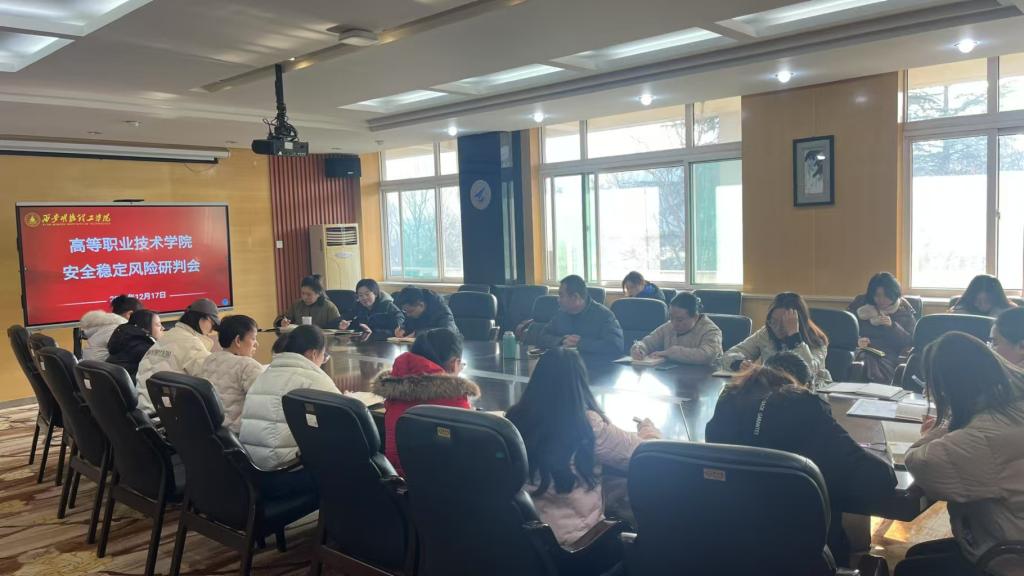 为了深入分析当前学院安全稳定形势,有效预防和应对各类安全事故,确保各项工作稳步推进。12月17日上午,高等职业技术学院在明理楼216会议室召开安全稳定风险研判会。