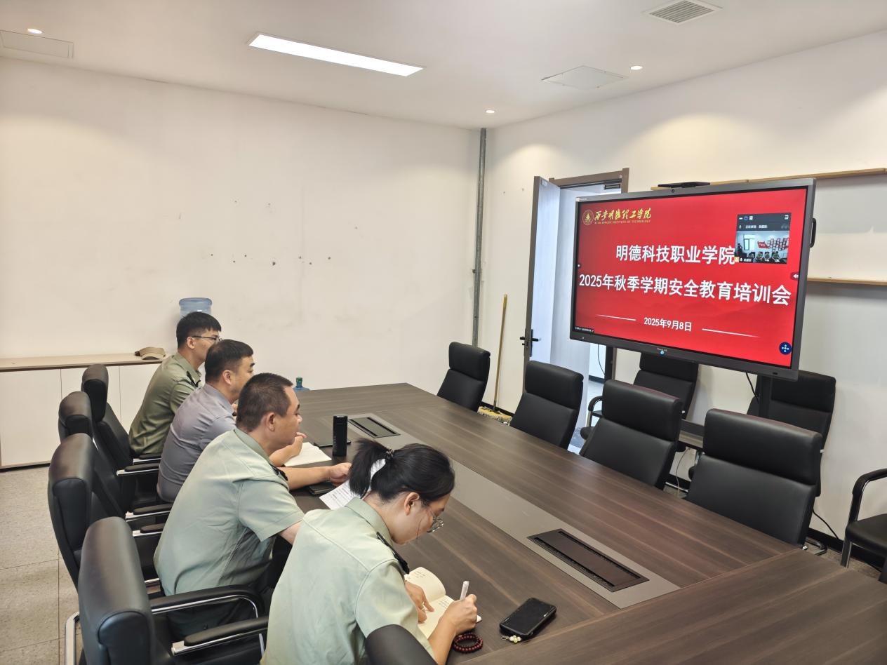 为筑牢校园安全防线,提升应急处置能力,强化学生安全意识,9月8日上午,明德科技职业学院在长安校区明理楼216会议室、莲湖校区德雅楼A102会议室召开2025年秋季学期安全教育培训会,党总支书记王庭良及全体辅导员参加会议,培训由学院党总支副书记王飞主讲。
