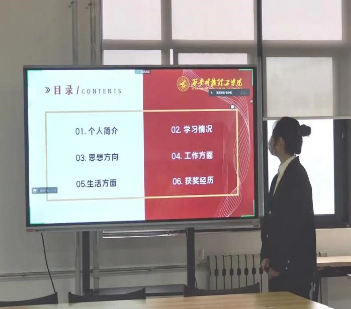 经过前期各班级、评议小组、辅导员审核推荐, 刘帅兵、周晓栋、王艺璇、李雨欣、高配、曹笑晴等六名同学按照抽签顺序依次上台答辩,在答辩过程中从多个方面出发,分享了自己在过去一学年里取得的学习成绩,参与的竞赛以及获得的奖项。在工作方面,他们分享了自己的工作经历、社会实践和成长经历,并且简述了自己对未来的工作和学习的一些展望。