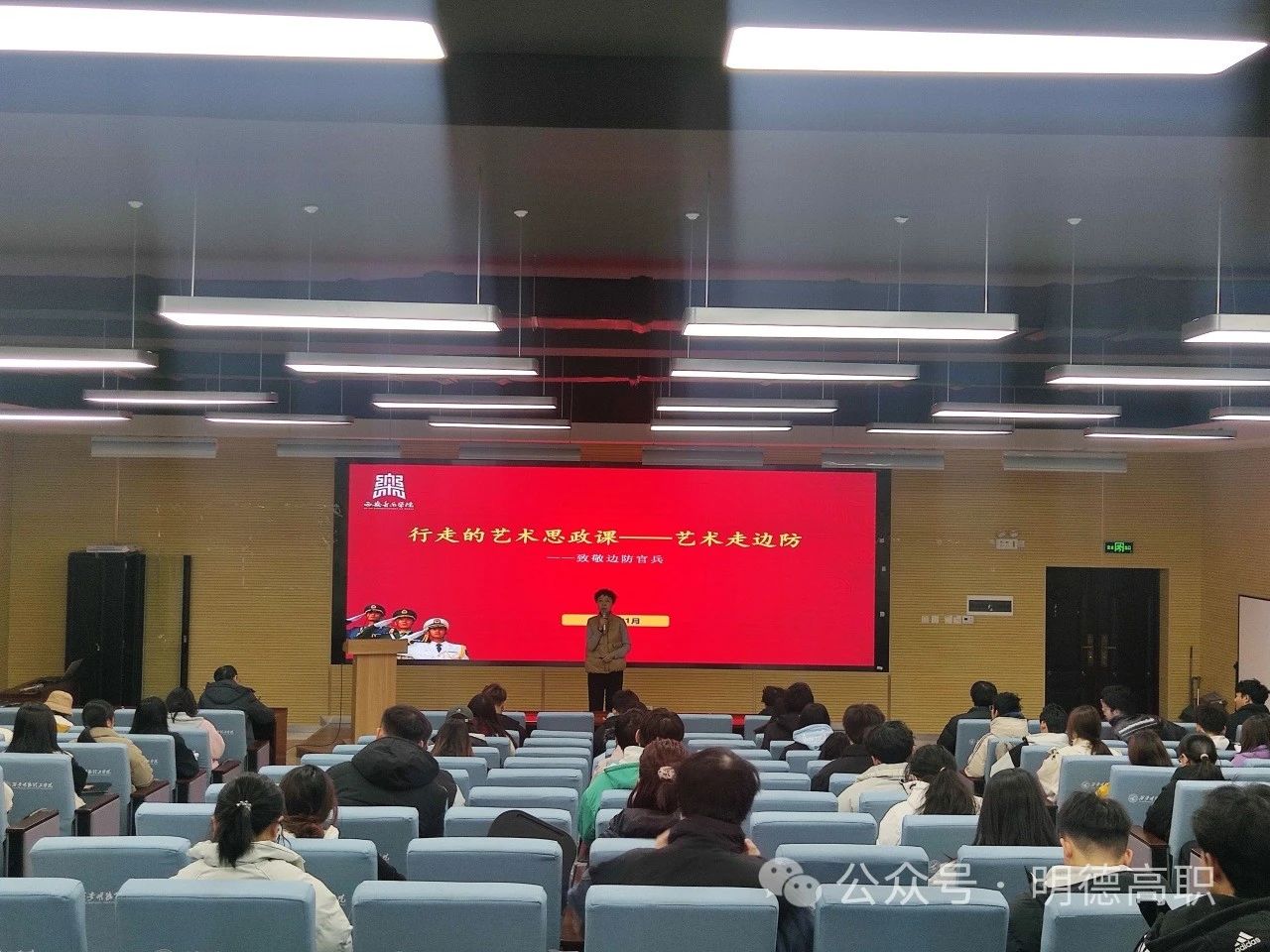 为弘扬爱国主义教育,提升同学们艺术与文化内涵,2024年1月5日上午,我院邀请到西安音乐学院张津波教授在建德楼202报告厅为世界杯官网学生带来一场“艺术走边防”的主题讲座。本次讲座共吸引全校160余名同学参加,人民武装部李传斌等多位老师参加了本次讲座。讲座由高等职业技术学院副院长于莉主持。
