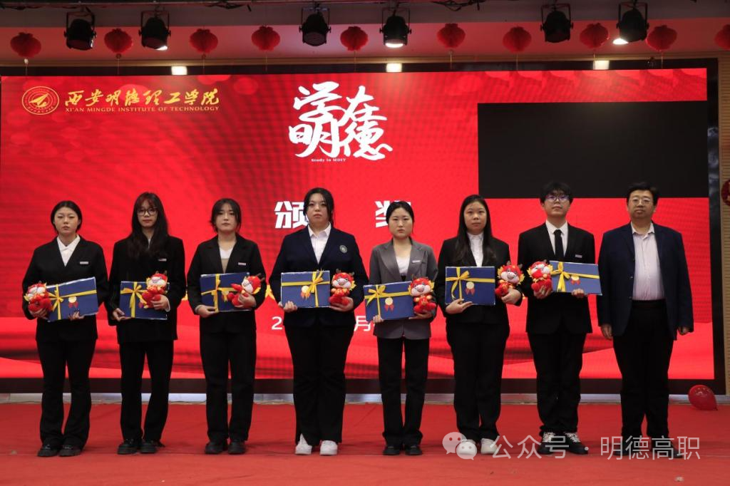 高等职业技术学院副院长于莉宣读了表彰决定,参会领导为获奖学生代表颁奖。