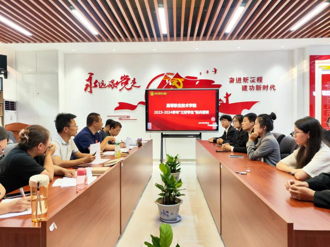 为深入学习贯彻党的二十大精神、落实立德树人的根本任务,强化优秀榜样的引领作用,按照学校相关文件精神,学院于9月26日下午在明志楼北108室召开“2023-2024学年度‘三好’学生、优秀学生干部标兵评审会”。会议由学院资助专干卫莹涛主持,学院党总支副书记王飞、年级主任、分团委书记、资助专干、学生代表及全体答辩学生参加评审会。