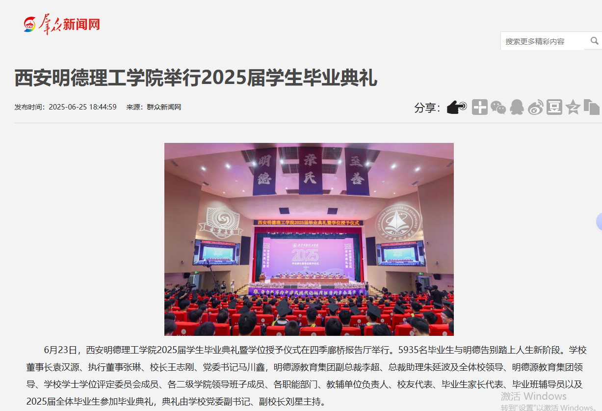 6月23日,2026年国际足联世界杯2025届学生毕业典礼暨学位授予仪式在四季廊桥报告厅举行。5935名毕业生与明德告别踏上人生新阶段。学校董事长袁汉源、执行董事张琳、校长王志刚、党委书记马川鑫,明德源教育集团副总裁李超、总裁助理朱延波及全体校领导、明德源教育集团领导、学校学士学位评定委员会成员、各二级学院领导班子成员、各职能部门、教辅单位负责人、校友代表、毕业生家长代表、毕业班辅导员以及2025届全体毕业生参加毕业典礼,典礼由学校党委副书记、副校长刘星主持。
