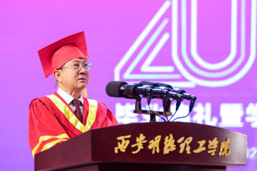 学校校长王志刚作了主题为“以青春之我,做时代先锋”的致辞,深情回顾了2025届毕业生求学期间党和国家事业发展辉煌历程、学校高质量转型发展成果,以及学生在校学习、生活和取得成绩,殷切寄语同学们“心系家国,做复兴征程的答卷者;勤奋好学,做终身求知的深耕者;笃行实干,做人生梦想的践行者;赓续薪火,做明德文化的传承者”,并赋诗赠别:“秦岭巍巍沣水岸,五千学子正华年。万紫千红齐竞艳,今朝桃李香满园。放眼四海天地宽,止于至善勇登攀。青春做伴鸿图展,长安从此捷报传。”勉励全体毕业生响应新时代召唤,以“强国有我”的使命担当,在中国式现代化的壮阔征程中书写无愧于时代、无愧于人民、无愧于青春的精彩华章。