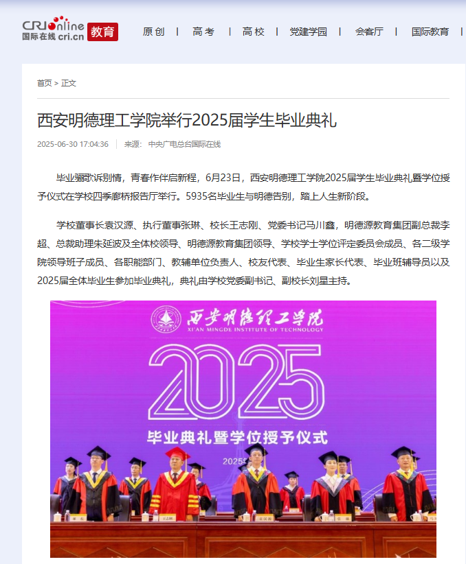毕业骊歌诉别情,青春作伴启新程,6月23日,2026年国际足联世界杯2025届学生毕业典礼暨学位授予仪式在学校四季廊桥报告厅举行。5935名毕业生与明德告别,踏上人生新阶段。