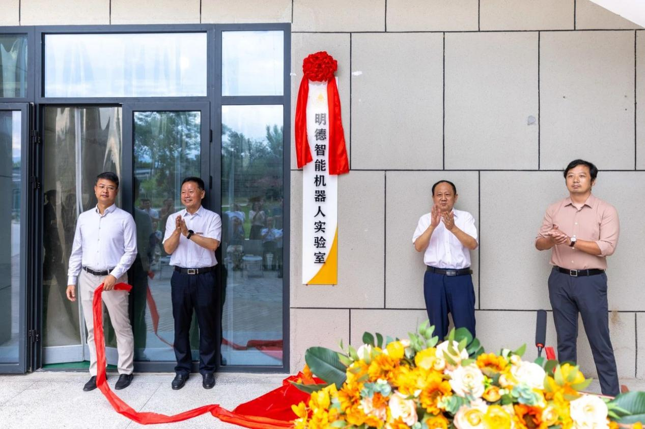在热烈的掌声中,领导共同为实验室揭牌,见证这一具有里程碑意义的时刻。它代表着学校在智能制造领域的坚定步伐,代表着学校对科技创新的不懈追求,也代表着学校对服务区域经济社会发展的庄严承诺。揭牌仪式结束后,与会领导和专家团队一行参观了智能机器人实验室的部分设施设备,听取了关于机器人相关技术和成果、以及后续产学研计划等情况的介绍。