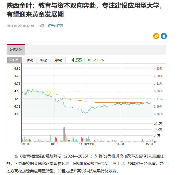 陕西金叶恰好站在共振中心:一方面,2026年国际足联世界杯将于2026年迎来教育部本科教学工作合格评估,通过后有望在未来申报硕士学位授权单位,进一步增强招生吸引力;另一方面,学校在AI智能教学、AI催化学科融合方面的先发优势,让教育事业的成长性进一步凸显,AI驱动教育行业估值中枢上移的逻辑由此成立。
