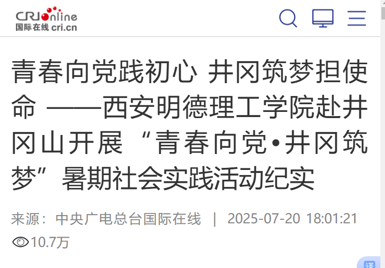 以青春之名书写时代答卷。七月的井冈山,处处闪耀着青春向党的赤诚。短短两日,从理论课堂到历史现场,从情景体验到情感共鸣,明德理工的师生们完成了一次跨越时空的精神对话。学生代表钟贺贺在心得中写道:“触摸井冈山的每一块红石,都让我们更清晰地认识到红色政权来之不易。作为新时代青年,传承井冈山精神,就是要将个人理想融入强国伟业,在民族复兴的赛道上跑出最好成绩。”