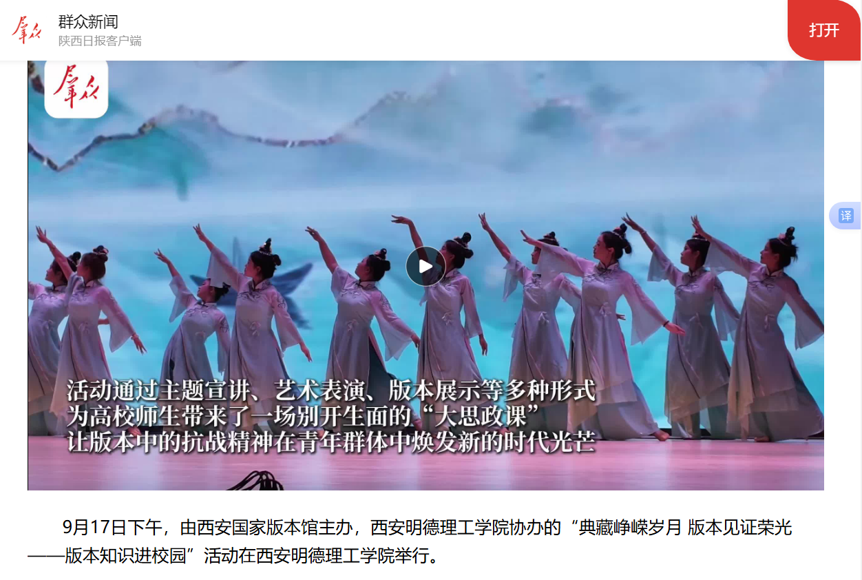 本次活动是西安国家版本馆开展“版本知识进校园”系列活动的重点环节,也是两家单位落实大思政课教育实践基地合作建设的重要内容,旨在通过主题宣讲、艺术表演、版本展示等多种形式为高校师生打造了一堂生动的“大思政课”。