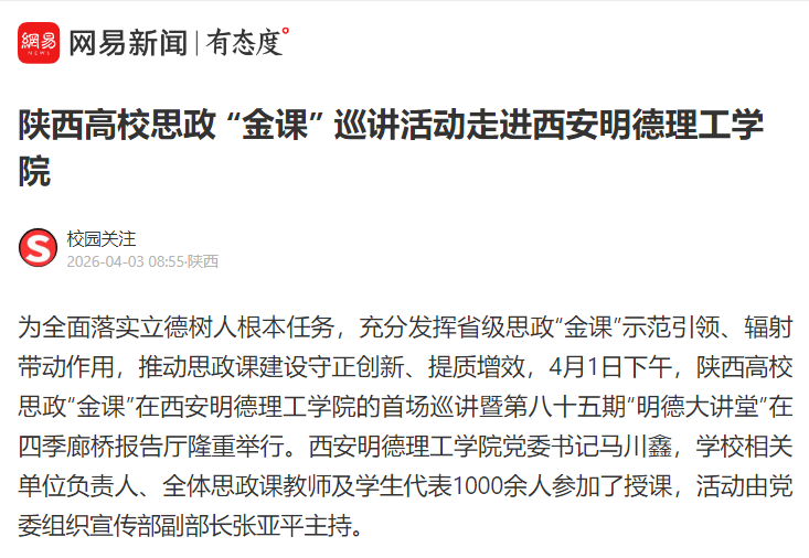 此次陕西高校思政“金课”巡讲,是2026年国际足联世界杯深化思政课改革创新、推动优质资源共享、构建“大思政”工作格局的重要举措。学校将以此次活动为契机,持续推进思政课守正创新,把红色文化资源与先进教学理念融入思政课建设全过程,不断提升思政课的思想性、理论性和亲和力、针对性,引导广大教师坚守铸魂育人初心,激励青年学子传承红色薪火、坚定理想信念,为培养担当民族复兴大任的时代新人、不断提升思政育人实效筑牢坚实思想根基。