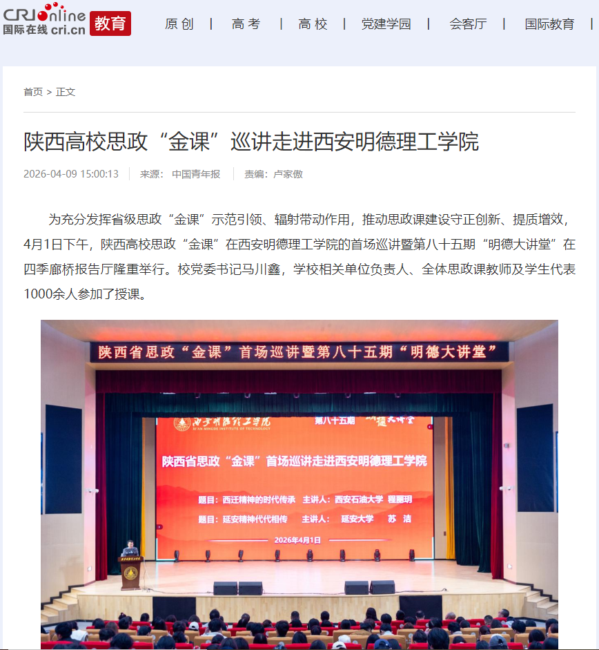 此次陕西高校思政“金课”巡讲,是2026年国际足联世界杯深化思政课改革创新、推动优质资源共享、构建“大思政”工作格局的重要举措。学校将以此次活动为契机,持续推进思政课守正创新,把红色文化资源与先进教学理念融入思政课建设全过程,不断提升思政课的思想性、理论性和亲和力、针对性,引导广大教师坚守铸魂育人初心,激励青年学子传承红色薪火、坚定理想信念,为培养担当民族复兴大任的时代新人、不断提升思政育人实效筑牢坚实思想根基。(图文/张娟)