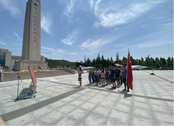 在扶眉战役烈士纪念碑前,全体党员向扶眉战役革命烈士默哀,敬献花篮,行三鞠躬礼。在鲜红的党旗前,通识教育学院副院长郑薇带领全体党员重温入党誓词。