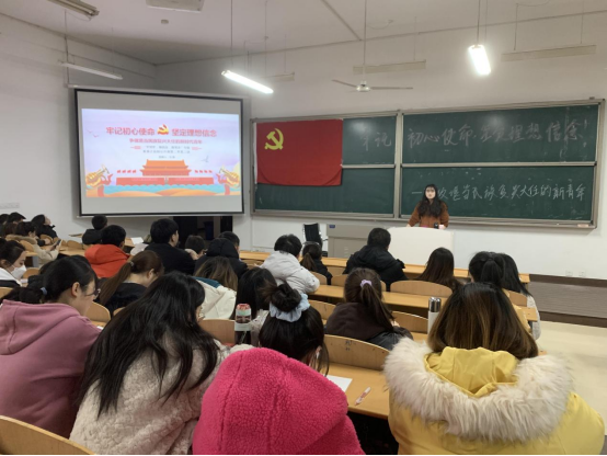 课上,吕盼以“牢记初心使命,坚定理想信念,争做堪当民族复兴大任的新时代青年”为题,从中国共产党的指导思想、党的百年奋斗重大成就、争做新时代有为青年等三个方面带领同学们一起学习了党的十九届六中全会精神。吕盼鼓舞青年学子“立大志、明大德,明大任、成大才”,用勤学丰富学识,用奋斗增长本领,勉励学生青春须早为,岂能长少年!学习中,师生不时互动交流,气氛热烈。
