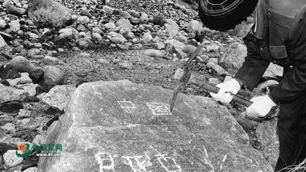 △每次到达点位后,拉齐尼就在石头上刻下“中国”两个字,宣誓国家主权。