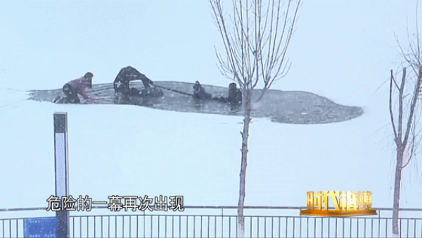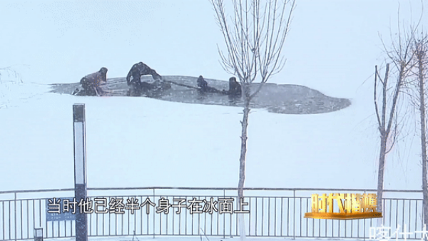 听到呼救声后,快速奔向出事的冰面
