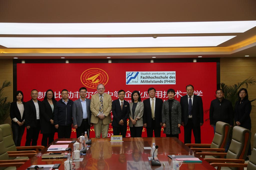 在热烈的掌声中,杨健君校长与FHM副校长Torsten Fischer教授在视频会议中签署了中德合作办学及国际交流框架协议。
