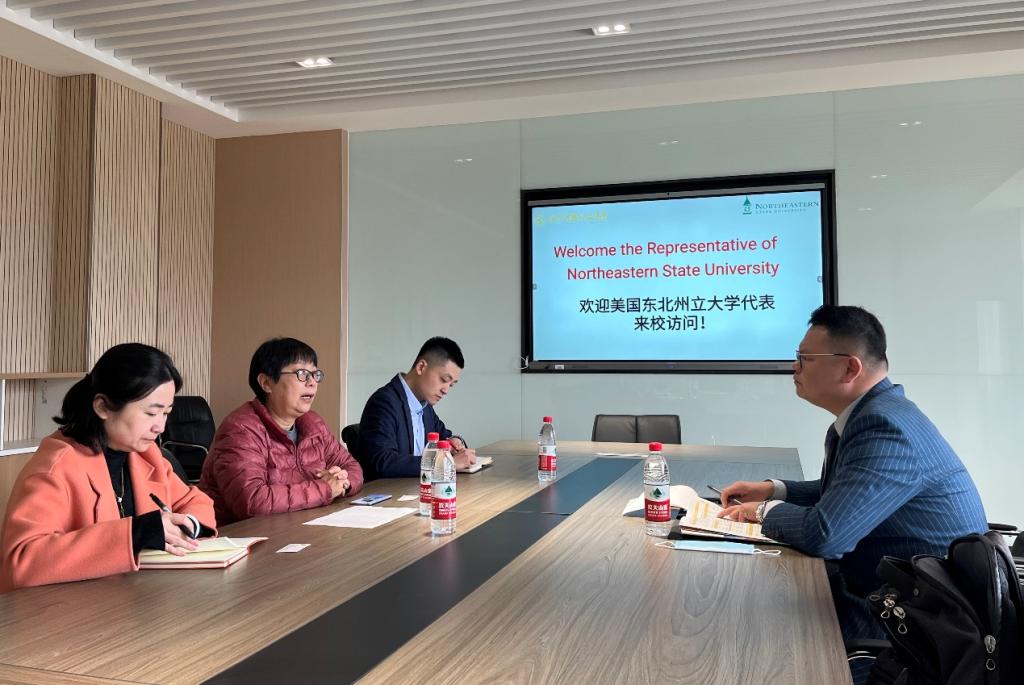3月2日上午,美国东北州立大学代表兼美加国际教育集团总经理李雷来世界杯官网访问。高等职业技术学院副院长于莉、国际教育学院院长助理何勃毅、外事办公室王雪钰等相关负责人会见了来宾。