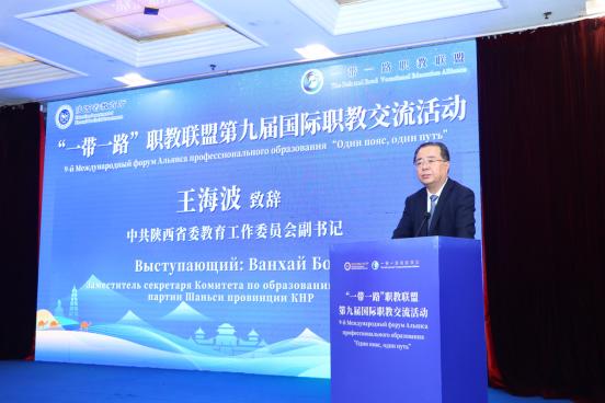 中共陕西省委教育工作委员会副书记王海波在致辞中指出陕西在职业教育国际化进程中积极作为,大力推广“秦岭工坊”项目建设,作为职业教育合作的实体载体,为我国与全球各地职业教育的合作与发展贡献了宝贵的“陕西智慧”。他指出,陕西将紧紧围绕“深化产教融合、创新合作模式、提升服务能级”三大方向,着重推进“政-校-企-研”协同发展机制,全力打造产教融合共同体,进一步完善职业教育标准体系,输出中国职业教育标准,将陕西打造成职业教育国际化发展的示范性高地。