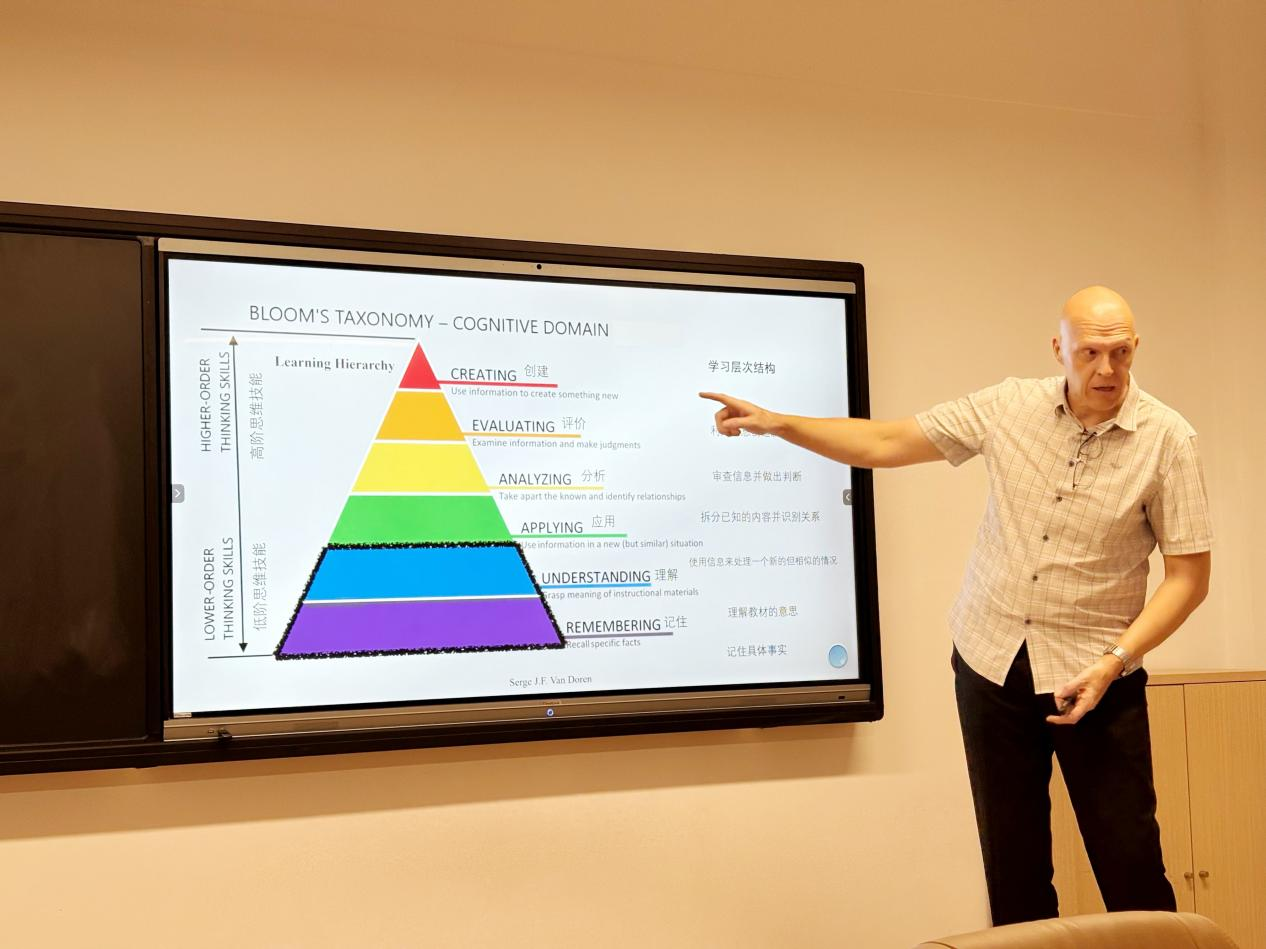 同时,他对比了亚洲语言与字母语言的差异,剖析了应试教育与能力培养导向教学的不同,并指出“布鲁姆”学习层次结构在外语学习中的应用,为教师们提供了全新的教学思路。
