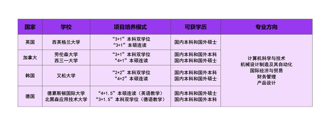 ※若未达到对方大学入学要求,可通过语言班进行语言强化,语言课程毕业且达到要求后即可进入对方大学本科/硕士专业课程。