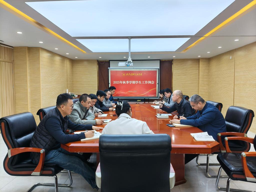 为扎实推进下一阶段重点任务,全面提升育人实效,11月3日上午,学校在明志楼207会议室组织召开2025年秋季学期第三次学生工作例会。党委学生工作部、各学院学生工作相关负责人参加会议。会议由童杨梓主持。
