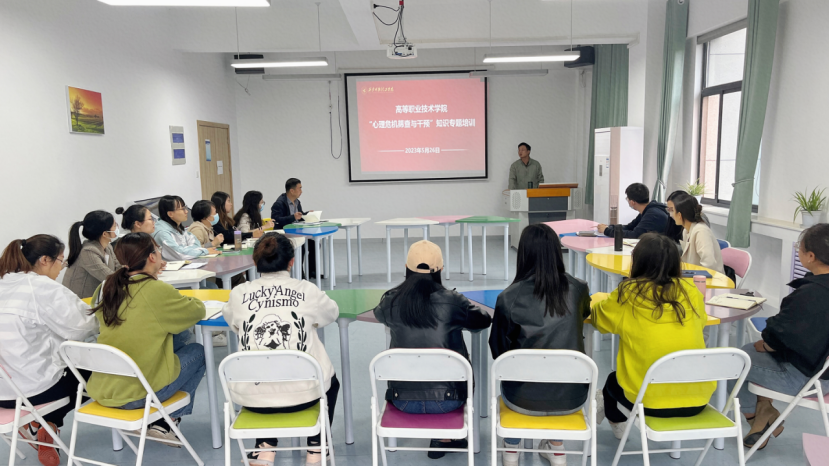 为培养学生在大学期间自尊自信和积极向上的生活态度,促进学生心理健康素质、思想道德素质、科学文化素质协调发展,帮助学生更好地适应大学生活及环境,不断提升高等职业技术学院全体辅导员工作业务能力,有针对性地开展心理危机筛查与干预工作,助力学生成长。在高等职业技术学院党总支书记、副院长王庭良的组织下,5月26日,我院全体学生工作干部在心理咨询中心203室听取了薛飘老师关于“心理危机筛查与干预知识专题培训”讲座。