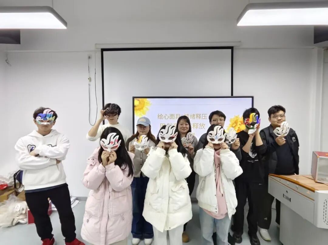 为帮助学生识别与表达情绪,借助艺术形式释放压力,12月17日晚,大学生心理健康中心联合蒲公英励学协会在明心楼203室开展了“绘心面具,情绪释压”心理团辅活动。本次活动由蒋昱辰老师指导,学生自主报名,通过绘画与互动形式,引导学生进行情绪表达与释放。