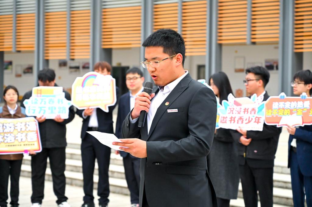 学生代表谷丞恩在发言中表达了对活动的期待:“21天的坚持不仅是习惯的养成,更是对自律与热爱的考验。希望通过晨读,我们能与经典对话,让书香浸润校园。”字里行间满是对知识的渴望和对自我提升的坚定决心,引起了现场师生的强烈共鸣。