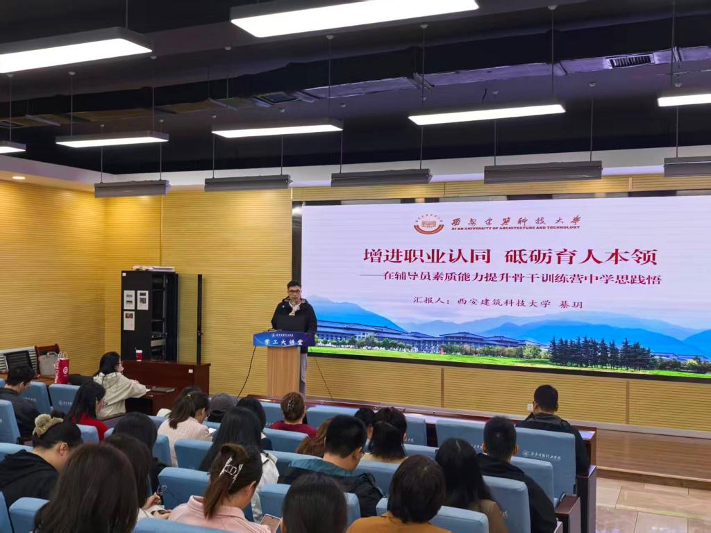 为切实加强世界杯官网辅导员队伍建设,不断提升辅导员的理论水平、职业能力和专业素养,10月14日,学校第四十期“学工大讲堂”——辅导员素质能力提升专题培训在建德楼202报告厅顺利举行。本次培训特邀2024年全国高校辅导员素质能力提升骨干训练营“十佳标兵”,西安建筑科技大学辅导员綦玥作题为《增进职业认同砥砺育人本领——在辅导员素质能力提升骨干训练营中学思践悟》的专题分享。学校全体辅导员参加了本次培训。