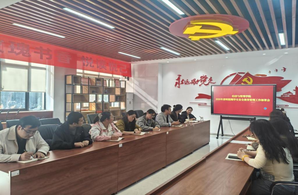 3月31日,经济与管理学院在明志楼北108党群服务中心召开2026年清明假期学生安全教育管理工作暨迎评工作部署会,学院党委副书记冯纪潮主持会议,全体辅导员参会。
