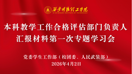 4月2日上午,党委学生工作部(校团委、人民武装部)在明志楼南409会议室,组织召开本科教学工作合格评估部门负责人汇报材料第一次专题学习会,部门全体人员参加。会议由党委学生工作部部长童杨梓主持。