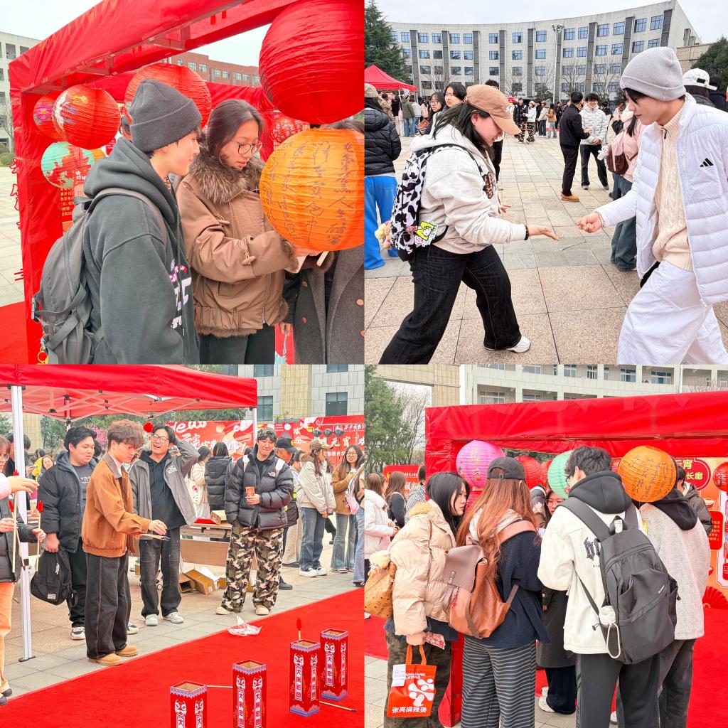 午后的中心广场人头攒动、热闹非凡,处处洋溢着节日的喜庆气氛。活动现场设置了多个民俗文化体验摊位,猜灯谜、做花灯、剪纸、投壶等传统项目吸引了众多学生驻足参与。傍晚广场中央的舞台上,文艺演出精彩纷呈,民族歌舞、乐演演奏等节目轮番上演,赢得阵阵掌声与喝彩。
