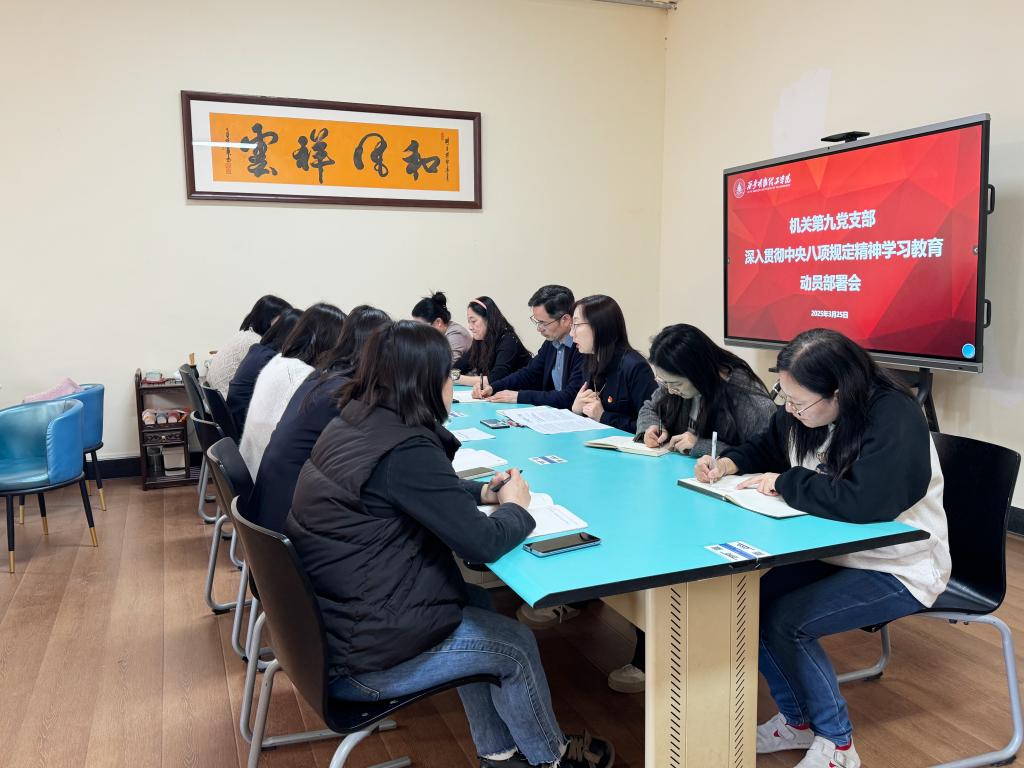 3月25日上午,机关第九党支部在图书馆513汇思空间召开深入贯彻中央八项规定精神学习教育启动部署会,支部书记强丽丽主持会议并作动员讲话,全体党员参加了会议。