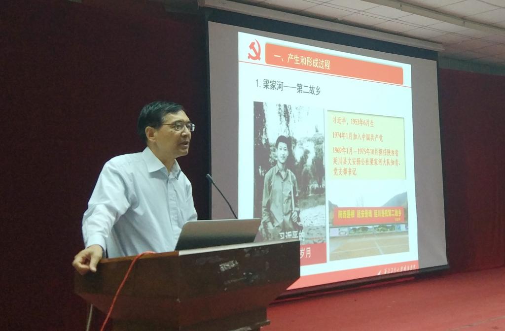 杨健君书记生动讲述了青年习近平在梁家河的七年知青岁月经历,尤其是过“五关”(跳蚤关、饮食关、生活关、劳动关、思想关)对年仅16岁的北京知青习近平的考验。接着,他从《之江新语》到《习近平谈治国理政》,从正定县委书记到党的总书记,讲述了习近平新时代中国特色社会主义思想的形成过程。随后,杨健君书记从“8个明确”“14个坚持”阐明了习近平新时代中国特色社会主义思想的科学内涵,指出了习近平新时代中国特色社会主义思想的历史地位。