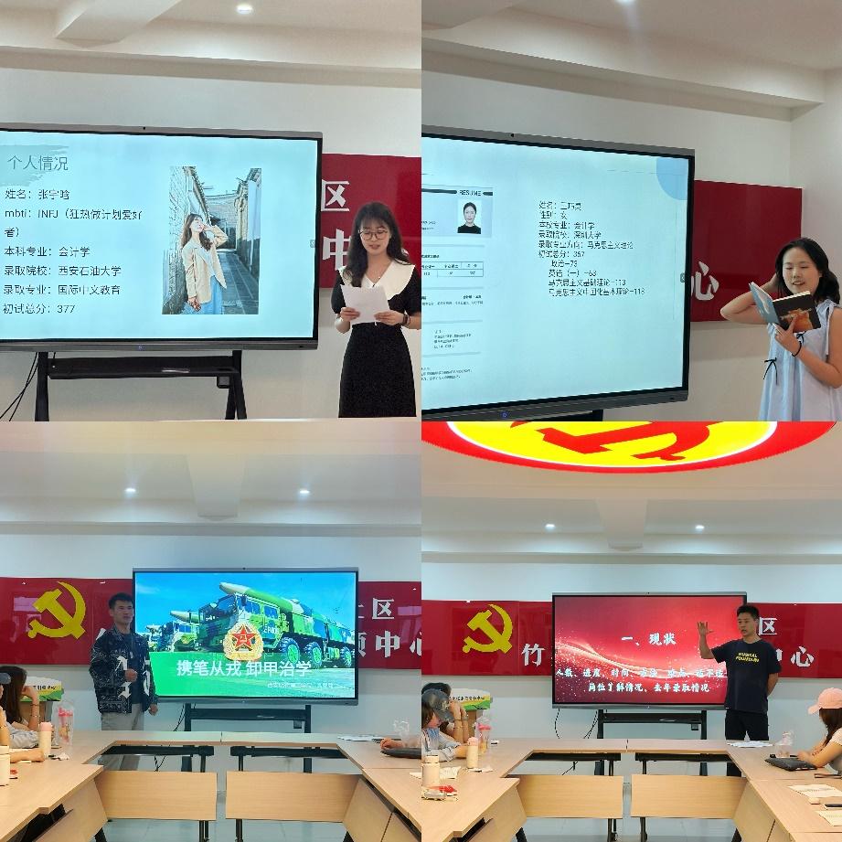 为帮助学生更好地规划未来,提升考研和考公竞争力,发挥学生党员和入党积极分子在学风建设中的先锋模范作用,5月11日,经济与管理学院学生第三党支部在竹苑“一站式”学生社区举办考研考公经验分享会。支部30名入党积极分子参与活动,活动由支部书记耿露主持。