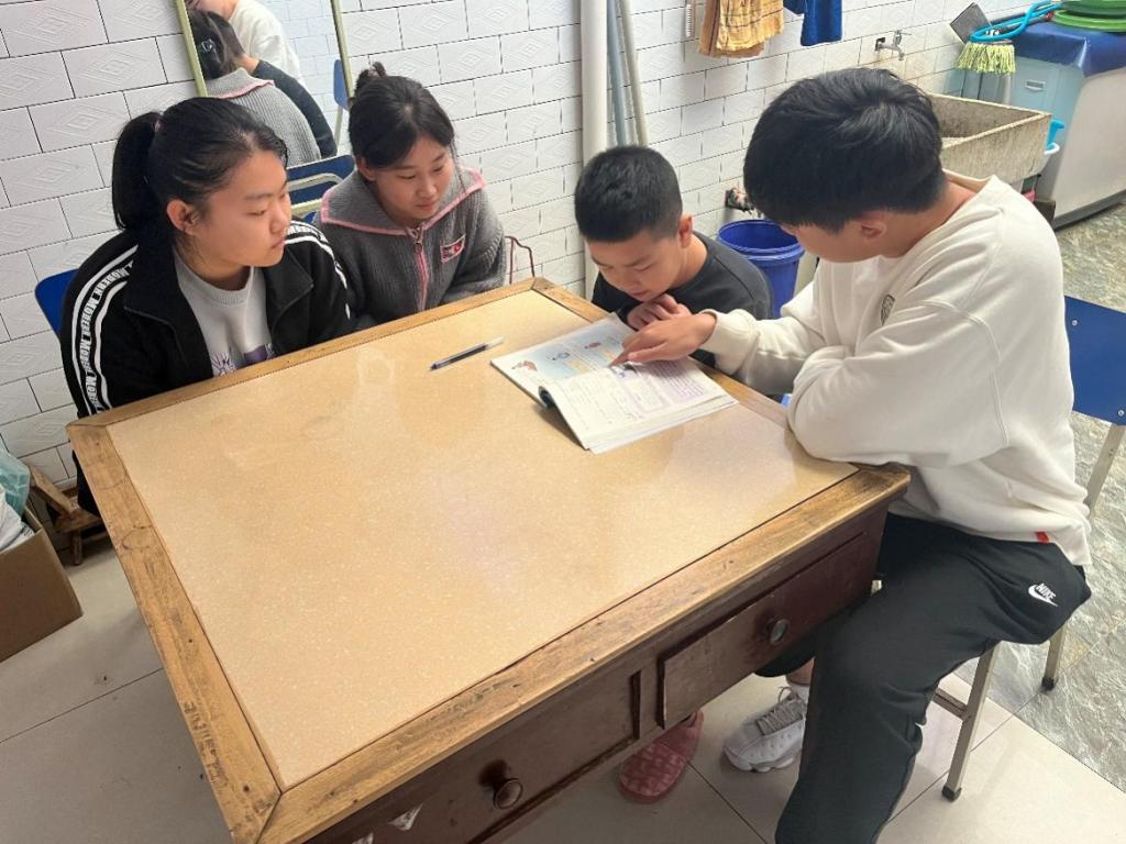 经过前期校、村对接,在党支部书记罗夫惠的组织下,组建了学生志愿者服务队。10月14日早上7:20师生们在学校中心广场集合完毕,统一列队出发,前往红庙村为当地中小学生开展学业帮扶,学生志愿者们两人一组为帮扶学生进行课程辅导,在完成作业辅导的基础上,还为中小学生开展了爱国主义教育,为他们分享半条棉被、十送红军等红色故事,引导中小学生们珍惜今天的幸福生活,为建设美丽家乡勤奋学习,做到感党恩、听党话、跟党走。学生志愿者们耐心的辅导和引导式教育赢得了帮扶学生们的喜爱和家长的好评。
