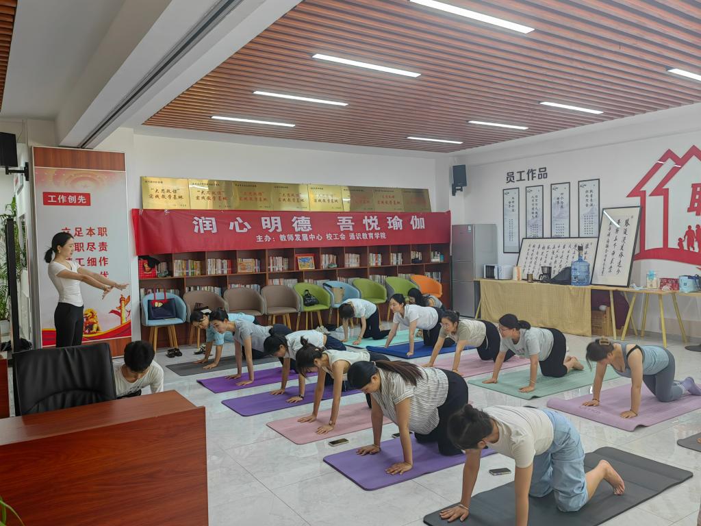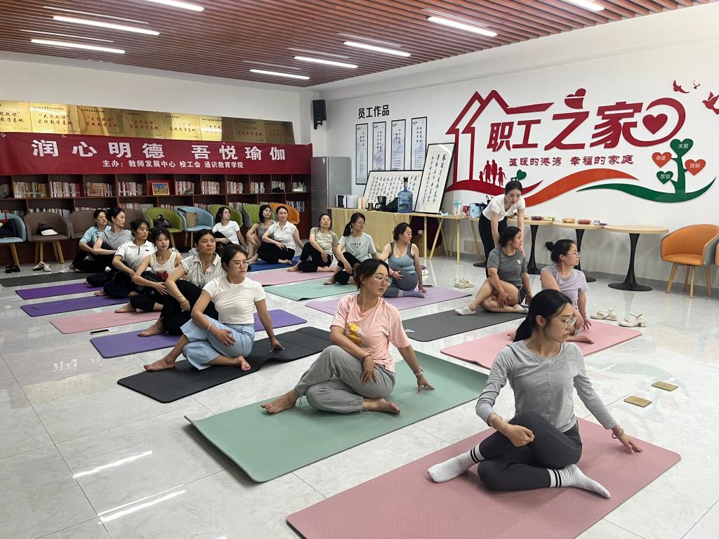 为进一步促进学校教职工身心健康,丰富教职工业余文化生活,校工会联合教师发展中心、通识教育学院,组织开展以“润心明德,吾悦瑜伽”为主题的午间瑜伽课程培训活动,活动邀请通识教育学院祝新蕊老师授课,第一堂课于6月13日顺利开课,来自各单位约20余名教职工参加了首堂课程学习。